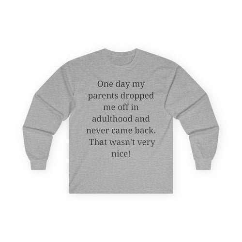Adulting Long Sleeve Tee — "One day my parents dropped me off in adulthood and never came back"